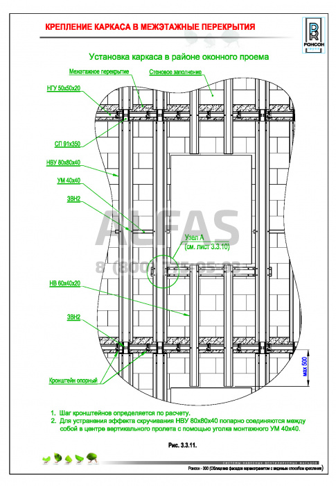 Возможна система крепления как по всей поверхности стены, так и исключительно в межэтажные перекрытия.