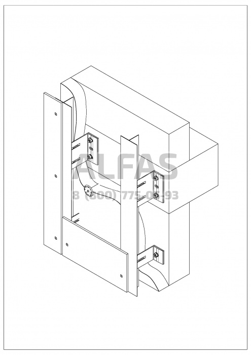 Вариант Econom. Экономичный вариант навесных вентфасадов. Кронштейны крепятся в несущие стены зданий.